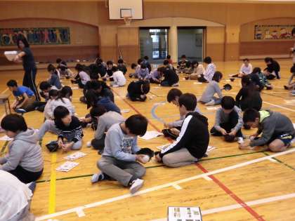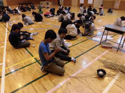27日。5年生の子どもたちが、パルシステム東京さんのご協力で脱穀の学習をしました。パルシステムさんが持ってきてくださった稲わらからもみを一粒ずつ外した後、もみ殻を取り除きます。野球ボールを使ってもみ殻を取るのですが、きれいに取るのは意外に難しく子ども達も集中していました。1本の稲わらから60〜80粒のもみが取れます。お茶碗1杯には3000〜4000粒のお米が入っています。来年の5年生は、自分たちで稲を育て収穫できるといいです。