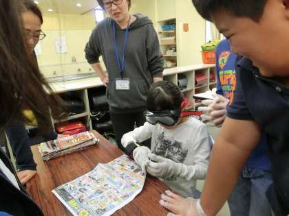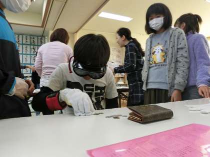 28日。今日は社会福祉協議会の方のご協力をいただき、5年生の子どもたちが高齢者擬似体験をしました。白内障の方の見え方を体験できるゴーグルを付けると、硬貨の違いが分かりません。また、足に重りを付けての歩きづらさ体験、軍手を重ねてお財布からお金を取り出す時の取りづらさなども体験しました。自分たちは何気なく簡単にできることも、筋力や視力が落ちた高齢者の方には困難を伴うことが分かりました。高齢者の方だけでなく、いろんな生きづらさを持つ人たちにやさしくなれるといいです。