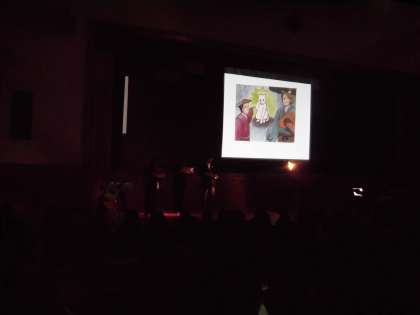 8日。今日の2校時は、世田谷区に残る民話などを題材にして創作紙芝居を行っている小川さんに来ていただき、「豪徳寺のまねき猫」「兵庫島のあゆ」「いのちを救うデザイン」の3つのお話をしていただきました。プロのギタリストの方もいらっしゃってお話に合わせてBGMを弾いてくださいました。低学年にはやや難しいかなと感じましたが、子どもは真剣に聞き入っていました。