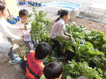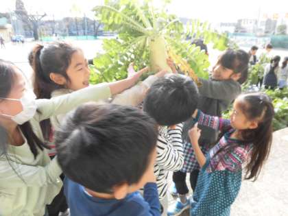 19日。2年生は生活科の学習で夏野菜を毎年栽培していますが、今年の2年生は冬野菜にも挑戦!! 世田谷ファームの井出さんから土づくりの基礎を教えていただき、種から育てました。台風の被害に涙を流し、何とか今日、大根を収穫しました。今はまだ小さい大根は3学期に収穫予定です。今日収穫した大根は明日の給食に使います。中町小学校産の大根、少しですがみんなでいただきます。