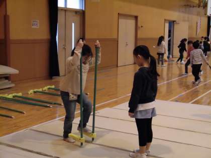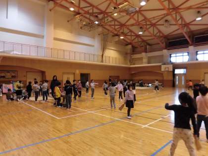 5日。1・2年生の子どもたちが昔遊びで交流しました。昔の遊びを楽しむには、スキルが必要です。2年生の子どもたちが1年生にもわかるように説明する姿が立派でした。