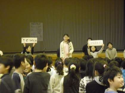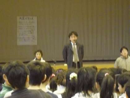 2月21日(月)に児童朝会がありました。校長先生より先週土曜日に行われた「子どもまつり」の話がありました。また、築山と池の名前が「せせらぎガーデン」と「きせつの池」に決まりました。
