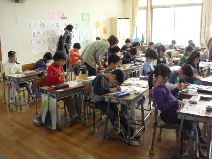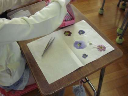 2年生は、生活科で先日乾燥させた草花を並べたり、ラミネートにはさんだりしました。全国花育推進会議の方々に教えていただきながらきれいな押し花作品が完成しました。作品は、15日の「ありがとうの会」に来ていただく方々にプレゼントします。