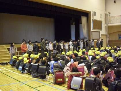 3月9日(火)に「校外班活動」が行われました。この一年間、班のためにリーダーとしてがんばってくれた6年生に感謝の気持ちを表し、その役を5年生、4年生が引きつぐ日です。新しい班長、副班長は大きな声や身ぶりで整列や人員確認などに取り組みました。