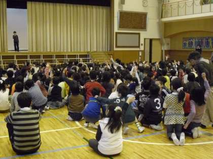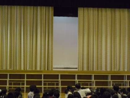 3月10日(木)児童集会が行われました。舞台のカーテンのすき間から見えるものを当てるクイズです。カラーコーンやボールなど様々なものが飛び交う瞬間に「何か」を判断します。集会委員会における締めくくりの活動はとても盛り上がりました。