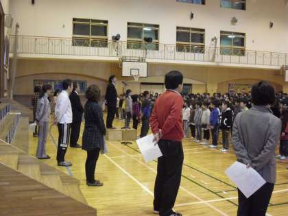 3月14日(月)に地震後初めての児童朝会が行われました。校長先生より「この経験を生かして、自分で自分の安全が守れるようになって欲しい」という話がありました。生活指導主任より、地震の際に「家族との連絡の取り方、集合場所。一人で家にいる時にどうするればよいのか。下校途中に危ないものはないか。」を家の人と話合いましょうという話もありました。