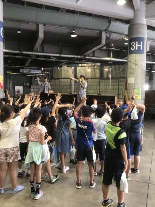 世田谷市場にきました。説明を聞いた後、セリの席、スクリーンや指で行うことを教えていただきました。