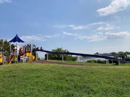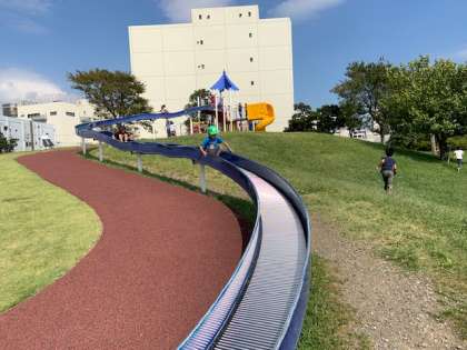 広い公園に長い滑り台。