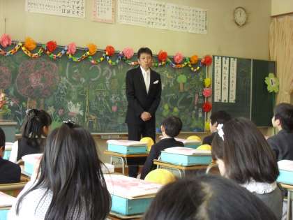 平成23年4月6日 青空の下 中町小学校の入学式が行われました。桜の花はあと少しの様子でしたが、ピカピカの1年生が両親に手を引かれて正門から入ってきました。担任の先生と出会い、これから6年間の学校生活が始まります。がんばれ1年生!