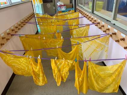 ?各クラスごとに幼稚園年少組年長組と交流しました。草木染めを手伝ったり、一緒の運動したり楽しく過ごしました。