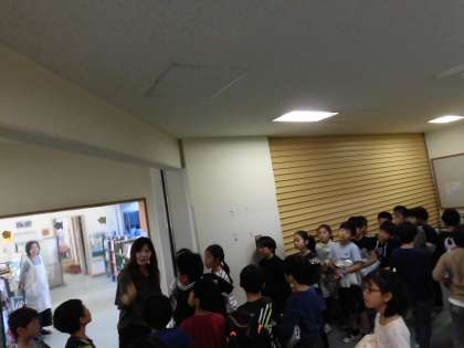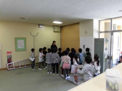 毎月行っている避難訓練。今月は避難訓練の後、防火シャッターが降りている所を見て学習しました。普段何気なく過ごしている校内ですが、説明を聞くと「あそこにも」「ここにもある」と発見をしていました。火災から命を守る大切な学習をしました。