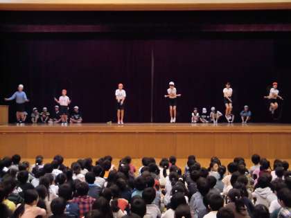 今週は、短なわ週間です。体育朝会では、体育館で、運動委員会がなわとびの1人技、2人技を実演で紹介しました。2重跳びは、練習のこつを教えてもらいました。寒くなりましたが、なわとびで体力づくりをしていきます。