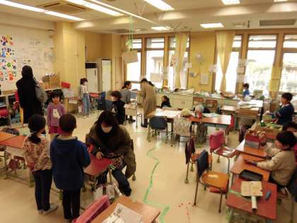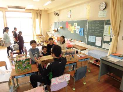 学校公開期間が始まりました。本日は、こどもまつりです。各教室で様々なお店を出し、お客さん、お店の人、両方を体験します。大賑わいです。