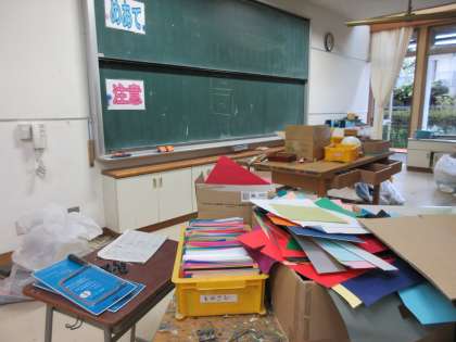 では、つぎのもんだいです。ひんと「はさみや のりを つかって こうさくするところだよ。3ねんせいから つかいます」さて、ここは、どこでしょうか?