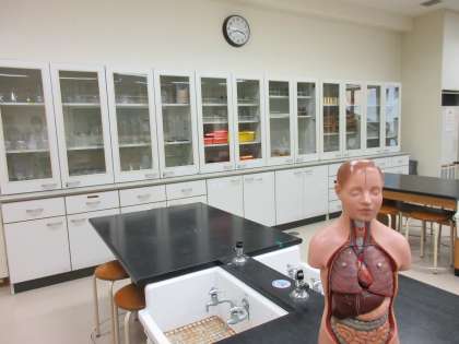 ひんと、じっけんをするところです。3ねんせいになったら、このおへやのおべんきょうをします。おやおや、じんたいもけいくんも うつっていますね。