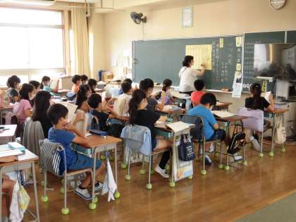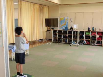 通常登校になり、3週目が始まりました。本校では体育の授業を始めました。体づくり運動では、体育館で体をいっぱいに動かしていました。教室の授業もじっくりと受けていました。保健では、視力検査を行いました。保健室は混み合うので、教室の横で行いました。