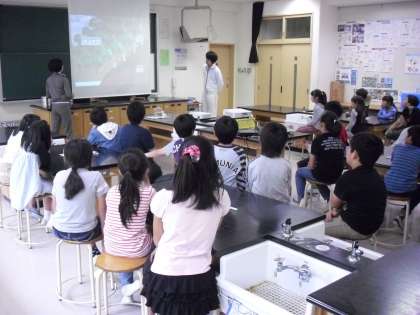 6月1日(水)4年生は「水道キャラバン」の授業を受けました。2時間続きの授業で、1時間目は「自分たちのくらしに水が届くまで」をビデオやキャラバン隊の人の話で学習しました。2時間目は、実際に水をきれいにする実験を行いました。子どもたちは楽しみながら、社会で学習した水についての学習を深めることができました。