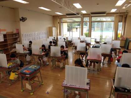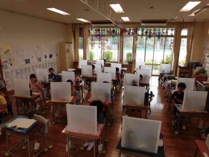 今日も昼食の時間をお伝えします。低学年でも自分のお弁当準備が自分でできています。給食の時に使用するパーテーションも自分でセッティングしています。「お弁当箱○○だよ。」と嬉しそうに見せてくれました。