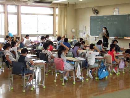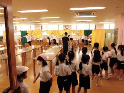今日は、4時間授業です。1、4年生、転入生は心臓検診がありました。特に1年生は小学校では初めての体験でした。体育着に着替え、並んで会場(ランチルーム)へ、上半身を脱いで、横になり、ちょっとどきどきした様子でした。終わってからは笑顔が見られました。