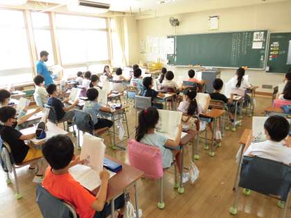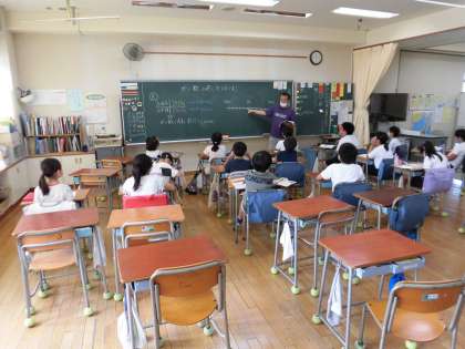 音楽室では、マスクをしたままですが、小さな声でわずかな時間だけ声を出しました。国語は物語文の学習で、時代背景をおさえつつ、登場人物について考えていました。算数ではグループにわかれて概数の学習でした。4桁の数字は、数直線のどこになるのか考えました。