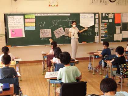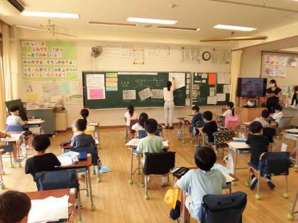 本日は、1年生「10より大きい数」の学習をしました。担任の先生が動画テレビに映ると歓声がでました。あさがおの数を数える問題を1つずつ数える、2、4、6のように2つずつ、5、10のように5つずつ数える等、考えを発表しました。他のクラスの先生も参観に来られたことが、嬉しかったり恥ずかしかったりしながらも頑張っていました。