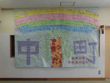 9月30日は本校の62周年開校記念日でした。例年は、全校でお祝い集会を行っていましたが、今年は、一人一人が考える「中町小学校のよいところ」を書き、写真のようにしました。校内のたてわり活動の掲示板に貼っています。