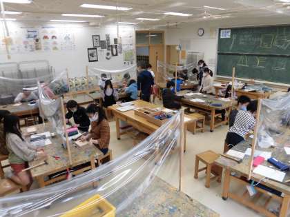 5年生図工では、金槌を使ったり、針金を曲げたりして、オリジナルのオブジェ制作をしていました。自分のイメージ通りにするには、子どもたちが考えながら、手や道具を動かして作品に集中していました。家庭科では、学級を半分にして、ミシンを扱っていました。新型コロナウイルス感染症対策の一つで、できるだけ密にならないよう、一人一つのミシンを扱えるように工夫して取り組んでいました。1年生は、漢字の学習が始まっています。漢字の成り立ち(絵)を見て、これは何の漢字になるんだろうと、楽しみながら学習をしていました。