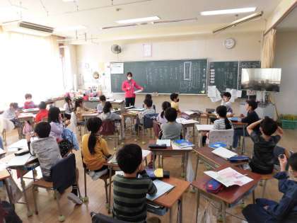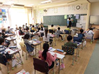 6年生の合奏は、体育館で練習を始めています。演奏はとても迫力がありました。発表が楽しみです。1年生の算数では、「わかった!」とつぶやきが聞かれ、2桁ひく1桁の計算を意欲的に行っていました。3年生の国語では、読み聞かせの本を相談していました。