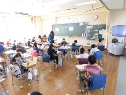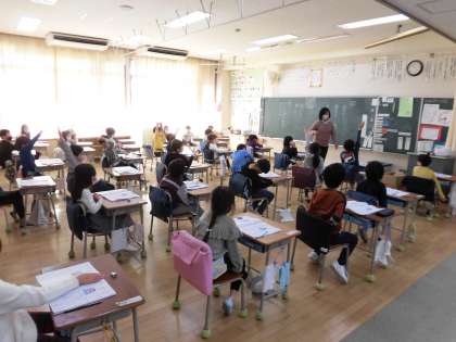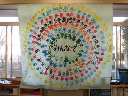 教室での様子です。3学期、落ち着いてスタートできています。一番下の写真は、先日に実施した学年の手形をスタンプしたものです。きれいな模様に仕上がりました。