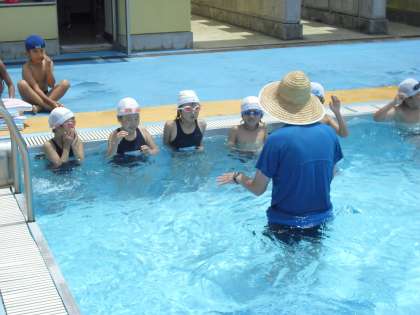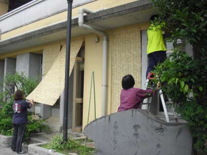 今日は、五年生は東京都の「学力向上を図るための調査」を行いました。国語、社会、算数、理科のテストです。みんな真剣に取り組んでいました。屋上では三年生がプールに入り、めあての級めざし練習に励んでいます。このところのあまりの暑さに、今日校長室の窓にすだれを取り付けました。暑い中学校主事さんにがんばっていただきました。