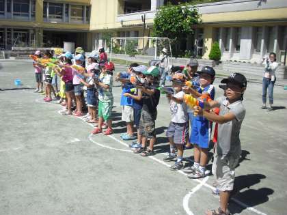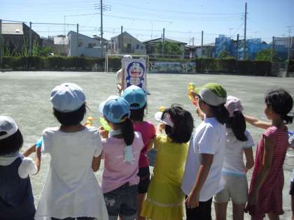 7月17日(日)中町小の校庭と体育館で、「なかたまスクエア」が開かれました。開始は一番暑い2時にもかかわらず、たくさんの子どもたちが参加しました。体育館ではヨガ、卓球、昔遊び。校庭では水遊び、水鉄砲、水風船ぶつけ。みんなびしょびしょになりながら、キャーキャー楽しんでいました。2時間があっというまに終わりました。運営委員のみなさま、応援の中学生のみなさま、保護者のみなさま、お疲れ様でした。