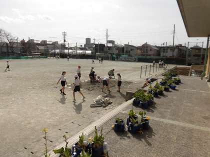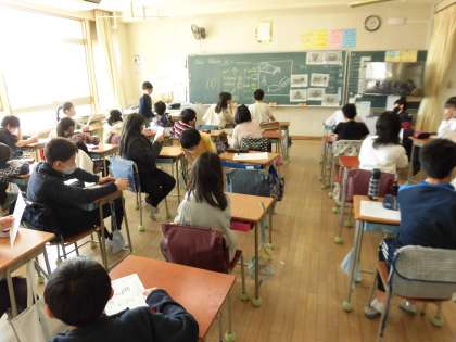 国語では物語を読んで、その魅力を自分の言葉で伝える作文を書いていました。心に残ったことや感動したことをうまく文字にすることがポイントです。英語では、「Where〜?」を学習していました。友達とのやりとりを楽しんでいました。校庭では、走り幅跳びをしていました。リズムを意識して助走し、記録をとっていました。