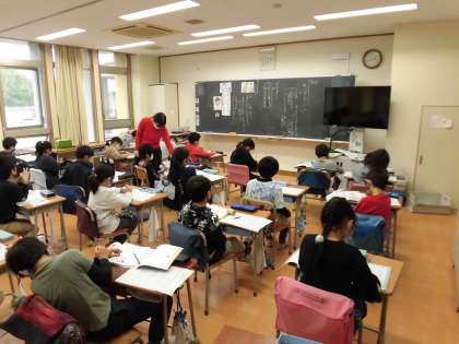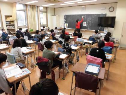 3年生では、「礼儀正しいということ」について考えました。子どもたちからは、あいさつをする。言葉遣いを正しくする。等考えが出ました。物語を読んでいくと、「人のことを思うこと」ということも「礼儀正しいこと」だと気がついたようでした。自分たちができそうなことも考えました。
