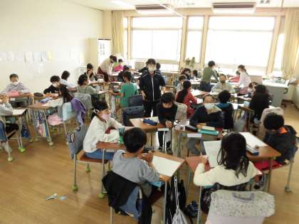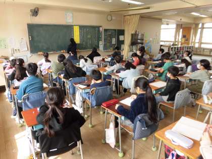 4年生は、「きまり」について考えました。ある学級会では、お楽しみ会を「好きな人同士で自由」のきまりで行うことになりました。しかし、お楽しみ会のバスケットボールは、上手な3人でチームになることにクラスから不満がでました。さて、登場人物の立場なら、皆さんはどう考えますか。児童は意見を交流し、考えを広げていました。