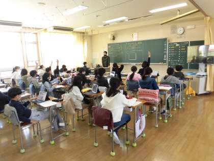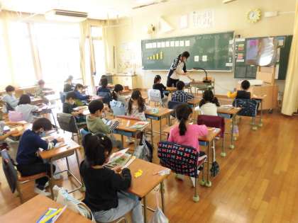 算数では、数の量、数列の学習をしました。校庭では、距離をとりながら、折り返しリレーを行いました。社会科では、「非核三原則」の学習をしていました。