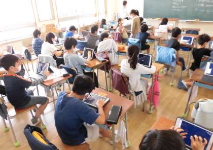 1年生は「春をみつけよう」の学習を行いました。4年生は、タブレットで、係活動のアンケートを作成しました。ロイロノートを使い先生へ提出するまで、よく考えていました。