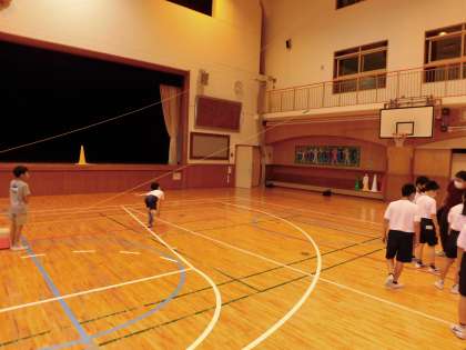 今週から「中町ランドウイーク」として、多様な動きをつくる運動を重点に、中休み、昼休みに実施します。体育館では、投げる運動、跳の運動を行いました。