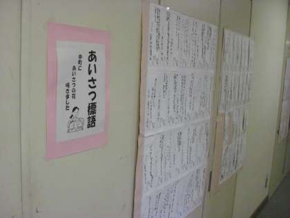 今週から、「夏休み作品展」が各教室やランチルームで始まりました。十人十色さまざまな作品が展示されています。この夏、子どもたちは貴重な体験をしたことがよくわかりました。廊下には「あいさつ運動標語」が掲示されています。午後は保護者会が開かれていました。明日は2、4、6年の保護者会となります。
