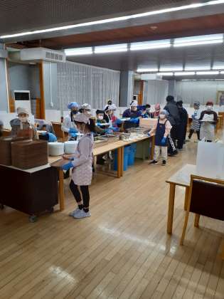 朝食は、食事係が配膳準備をしました。今日はたくさん歩くので、しっかり食べましょう。