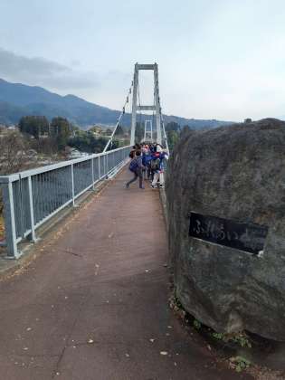 少し休憩を終え、田園プラザまであと少しです。途中つり橋を渡りました。