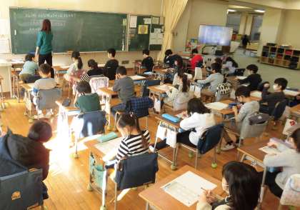 3学期、新年が始まり「書初め」をしました。1,2年生は硬筆(鉛筆)で、3〜6年年生は毛筆で行いました。教室にいくと、子供たちの緊張感が伝わってきました。