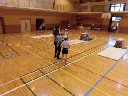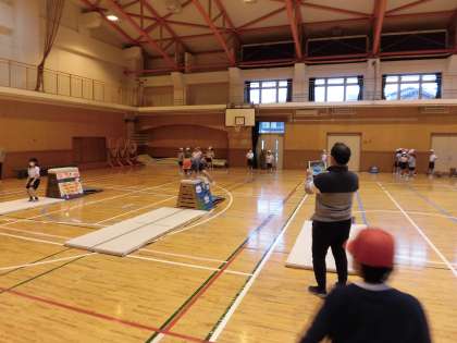 寒い日が続きますが、子供たちは体育の授業を頑張っています。体育館で跳び箱をしました。子供たちは、跳び箱の高さを選択し、チャレンジします。授業者がタブレットで、子供の様子を撮影し、その場で見せながら、指導して取り組みました。