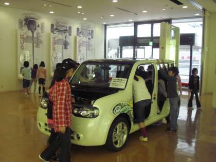 日産自動車では、ずらっと並んだ自動車が印象的でした。人や環境にやさしい自動車をつくっていることがよくわかりました。