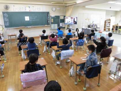 1年生を迎える会を行いました。全校が集まることはせず、校内テレビ放送で各学年からメッセージや代表委員会によるクイズをしました。