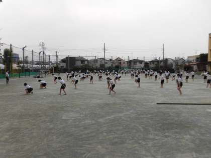 今日は、少し蒸し暑い日でした。水分補給、休憩を多めにして校庭で運動会練習に取り組みました。各学年が、だんだんと本番に近い形になってきました。