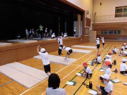 本日は体力テストをしました。内容は、反復横跳び、立ち幅跳び、ソフトボール投げ、長座体前屈などです。普段とは違う動きもありましたが、一生懸命に取り組みました。