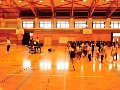 3年生は、体育館で歌唱を行いました。その様子を他の学年は教室で鑑賞しました。曲目は「ふるさと」です。きれいな歌声でのびやかに歌うことができました。