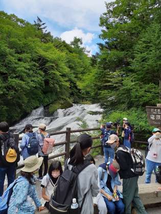 途中しゃくなげ橋でジュースをのみ、元気を回復して竜頭の滝まで降りてきました。