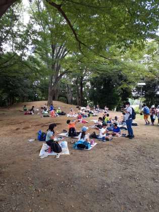 次太夫堀公園のとなりの広場でお弁当タイムです。