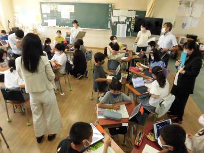 校内研究授業5年生社会科を行いました。漁業の単元では、資料から疑問に思ったこと、予測を伝え合い、学習課題を出し合いました。授業後は協議会を行いました。講師の先生からの指導や講評を受けました。